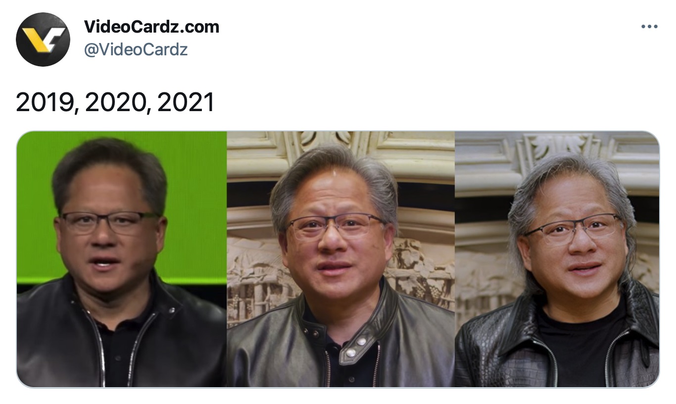 12 日消息 外媒 VideoCardz 搜集了英伟达创始人、CEO 黄仁勋 2019、2020 和 2021 年的照片,对比可见老黄近两年苍老很多,但身上的皮衣仍旧光追般闪亮。