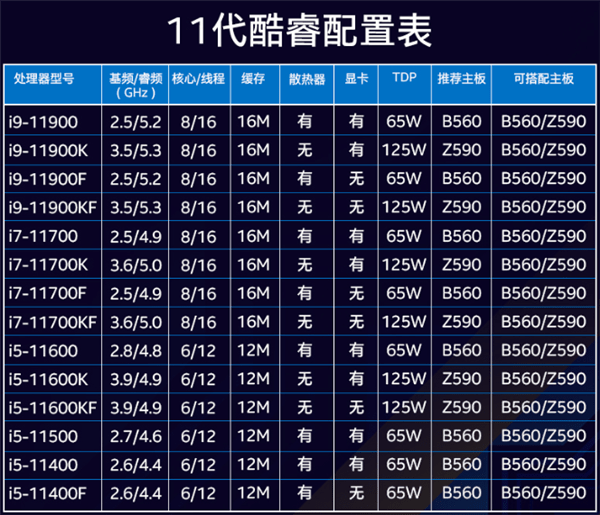 目前只有顶级的i9-11900K、i9-11900KF还略贵一些。