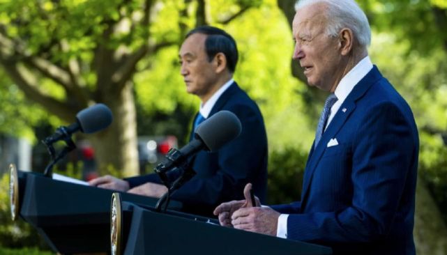 报道称,在联合记者会上, 拜登说:“今天,我和菅义伟首相重申,我们坚定支持美日同盟和我们的共同安全。”