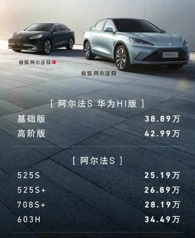 在不搭载华为解决方案的情况下,极狐阿尔法S本身起售价25.19万元,最高配价格34.49万元;极狐阿尔法S华为HI版基础版预售价38.89万元,高阶版预售价42.99万元。该款车型定位豪华,在外界看来,定价也属昂贵。