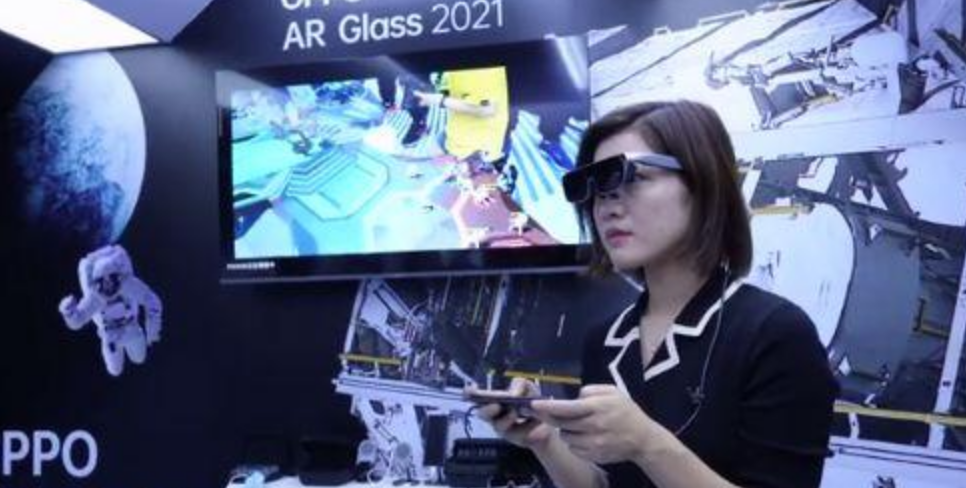 OPPO 在2021年的未来科技大会上也推出了其在 AR/VR 领域深耕而得的产品——OPPO AR Glass 2021,虽然这是一款概念产品,但是它却一下子为解决两大难题提出了自己的解决方案。