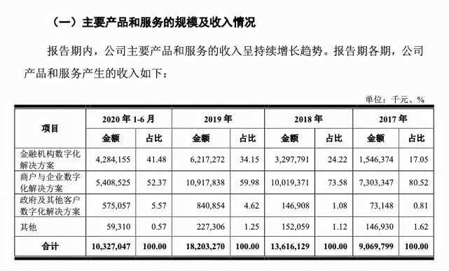 招股书显示,京东数科营业收入可以分为金融机构数字化解决方案、商户与企业数字化解决方案、政府及其他客户数字化解决方案等。