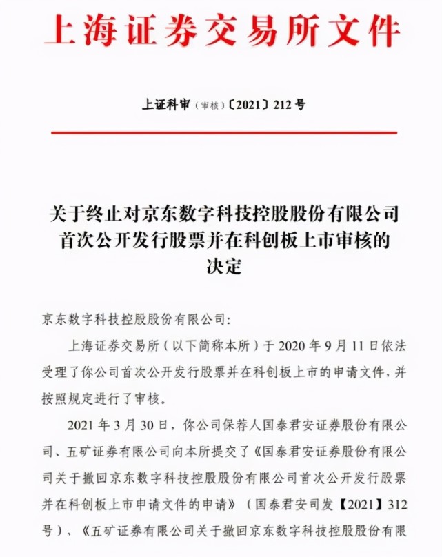 如今一语成谶。4月2日晚间,上交所官网显示,京东数字科技控股股份有限公司的科创板审核状态变更为终止。