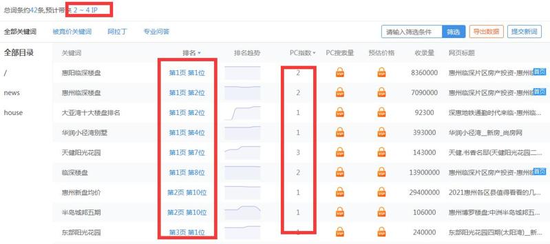 3、站长工具这个预估是看指数词值,及指数词排名来预估的,优化排名的指数词的值太低,即使靠前能带来的预估也小。
