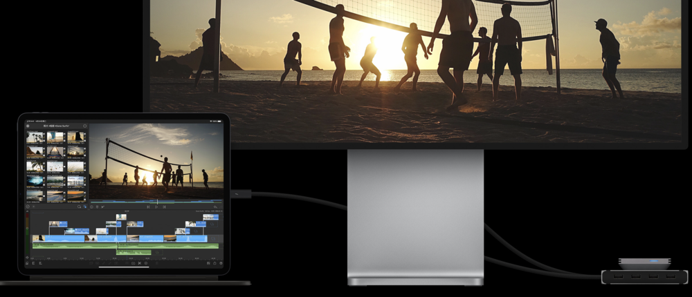M1 芯片功耗控制能力大幅提升,CPU 和图形处理性能分别涨了 50% 和 40%。12.9 寸版本用了 mineLED 的 XDR 屏幕,全屏 1000 尼特亮度,最高 1600 尼特,对比度 100000:1,之前的屏幕最亮也只有 600 尼特。整条 iPad Pro 产品线的数据版本都支持 5G,USB- C 接口支持雷电 4,传输速度更快也支持更多扩展,甚至把 iPad Pro 接到苹果自家四万多一套的 XDR ProDisplay 上还支持 6K 分辨率跑满。前后摄像头也升级了,甚至连机身存储,都能选到 2T 。