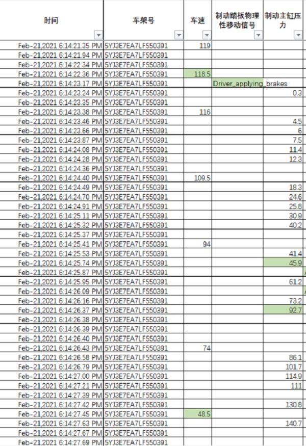另外,关于事故发生前30分钟车辆的状况,特斯拉方面是这样叙述的:在车辆发生事故前的30分钟内,驾驶员正常驾驶车辆,有超过40次踩下制动踏板的记录,同时车辆有多次超过100千米每小时和多次刹停的情况发生。