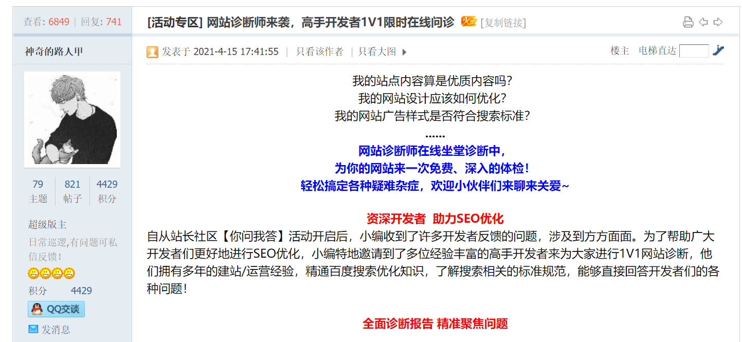 请问百度是个笑话吗?关于站长平台的【网站诊断师来袭,高手开发者1V1限时在线问诊 】