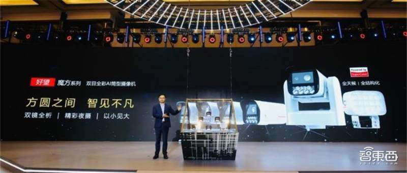 其中,“魔方”双目全彩 AI 简筒摄像机是一款兼顾全景和细节、全天候智能摄像机,配备全景 F1.0 大光圈和一个控细节的变焦摄像头,采用 RGBW 烛龙系列红绿蓝白超感光芯片传感器,使进光量增加 75%,并支持 AI 算法优化图像,但体积只有业界同款的 1/3。