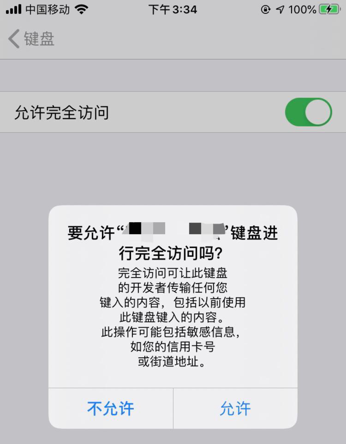 ?禁止第三方输入法关键权限。如果你觉得第三方输入法不可或缺,可以使用这类方法。例如在 iOS 系统中,不要打开输入法的完全访问权限,在安卓系统则可以禁止该输入法联网,或者获取你的身份标识(通常表现为获取电话权限)。
