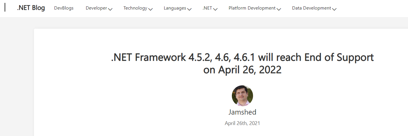 27 日消息 微软昨日发布公告,将于 2022 年 4 月 26 日停止支持 .NET Framework 4.5.2、4.6、4.6.1,之后这些版本将不再收到安全修复和技术支持。