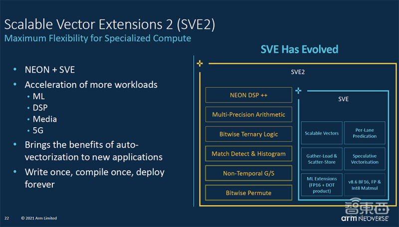 SVE2 是 Armv9 的重要特性之一,能显著提升从云到边缘的性能效率、可扩展性及安全性。