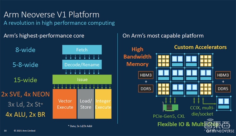 Neoverse V1 是 Arm 强调性能优先的新型计算系列的第一个平台,客户可基于该架构灵活地为大型数据中心服务器设计芯片。