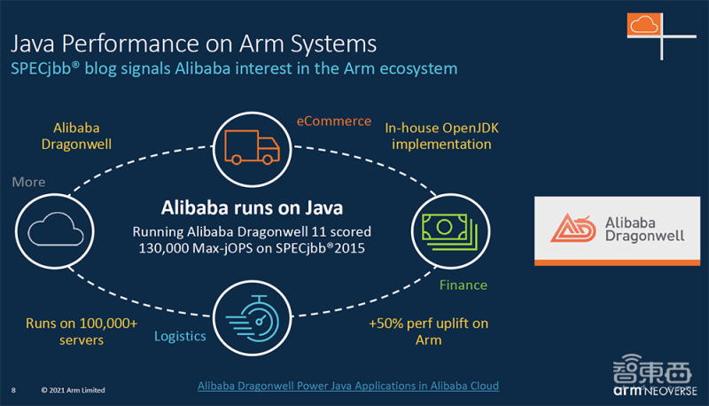 阿里云在即将上线的基于 Arm 架构 ECS 实例上完成了测试,并在 SPECjbb 测试数据中表现出色,通过双方紧密合作,基于 Arm 架构运行的 DragonWell JDK 性能提高了 50%。用户及开发者现可到阿里云网站上注册,获取 Arm 系列实例的受邀测试。