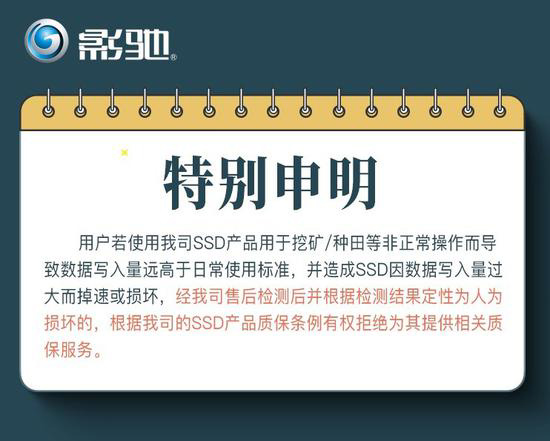 为了限制硬盘用于挖矿,近日国内厂商影驰发布公告,表示不再为挖矿后的固态硬盘提供质保。
