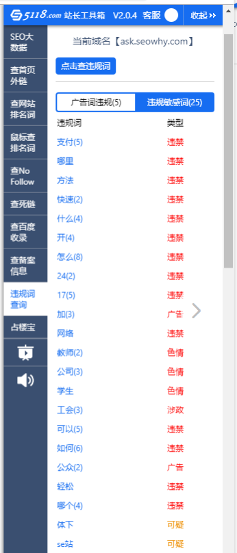 5118检测显示是违禁词,而且学生、公司、工会、17、24等这些都是违禁词????有那么广吗??