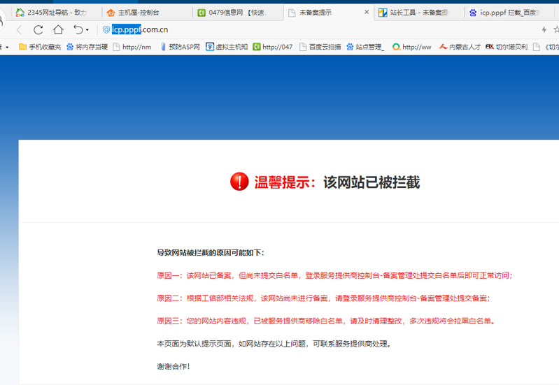 1、网站因备案问题被拦截,这个里面已经详细的告知拦截的原因及应该怎么处理;