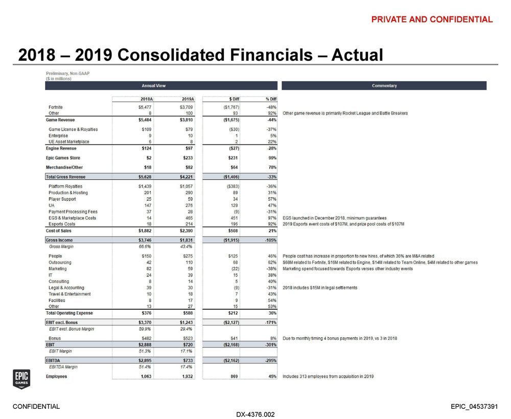 ,Epic 在报表中预计,该公司 2020 年收入可达 36 亿美元,但并不想公开去年具体的数据。不过有爆料者表示,Epic 拥有 3200 名员工,2020 年总收入可达 51 亿美元。