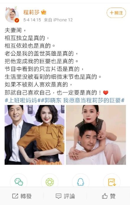 程莉莎:把老公宠成“巨婴”真的很幸福吗?如今郭晓东回应:我愿意当程莉莎的巨婴