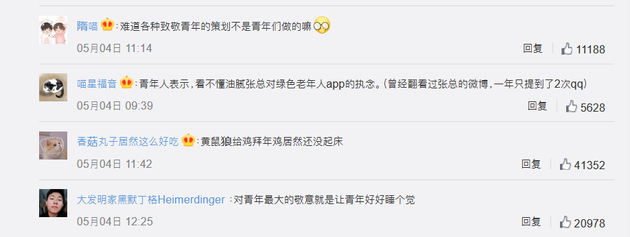 对此,网友却表示不满,称“难道各种致敬青年的策划不是青年们做的吗”,“对青年最大的敬意就是让青年好好睡个觉”。