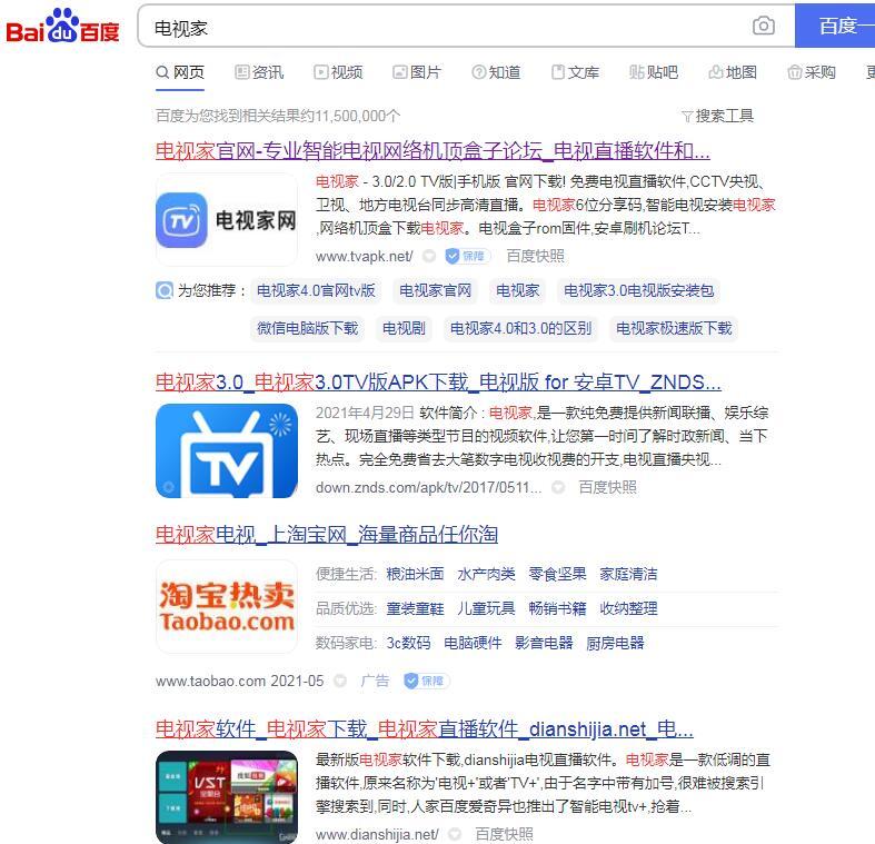 我们网站的核心词是:“电视家”,俩个网站都做了SEO优化。