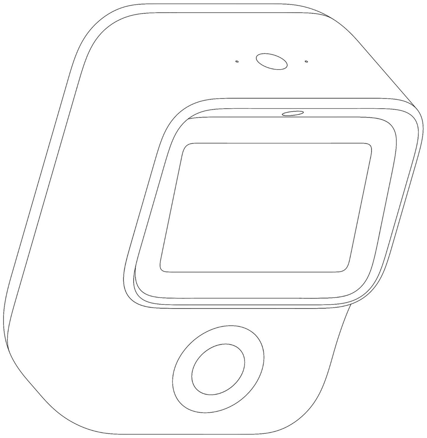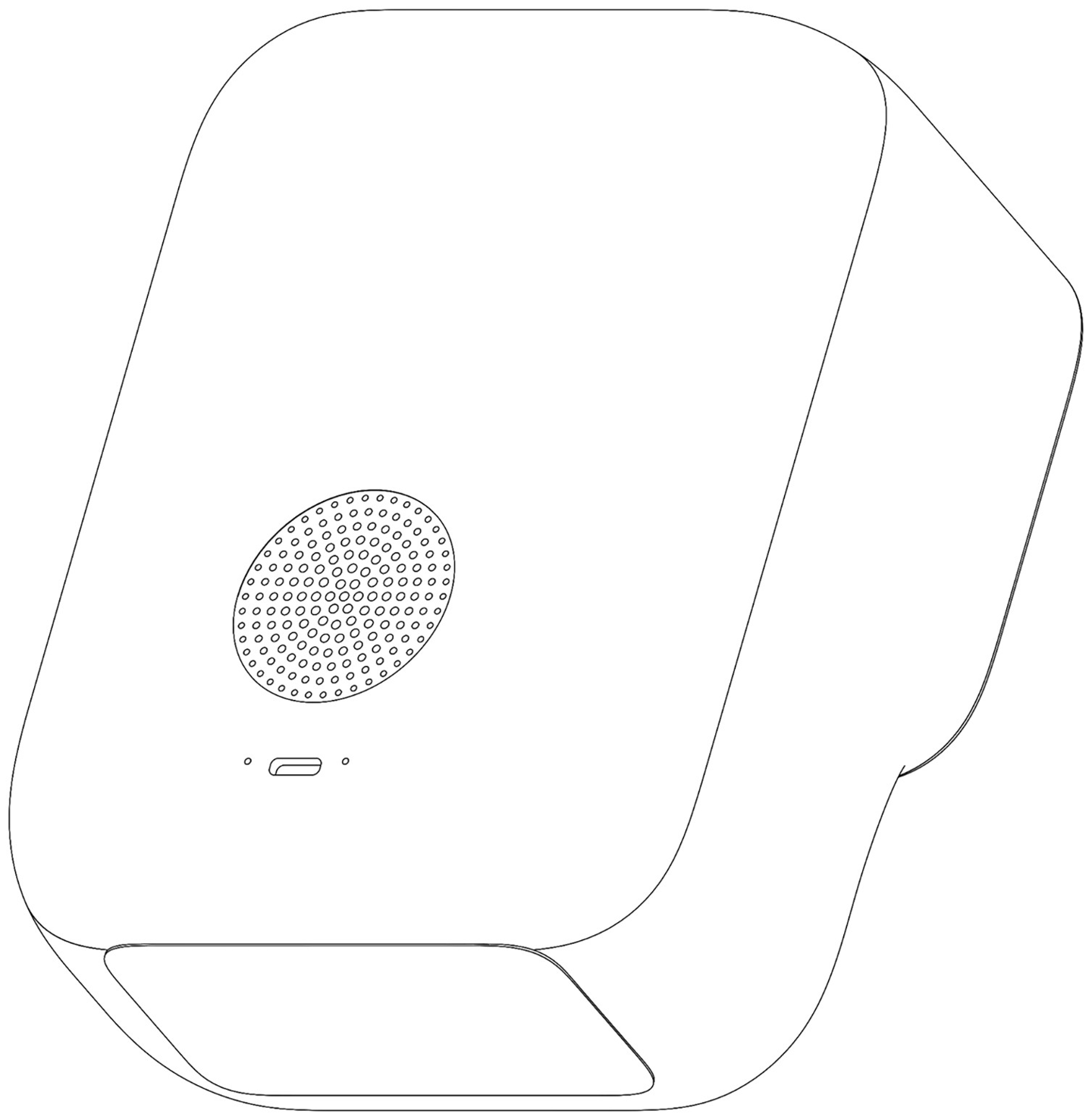 从图中可以看出,该早教机器人外观专利采用了一体式机身,外形较为圆润,上方为屏幕,下方为圆盘式按键,背后似乎是扬声器和 USB-C 接口。