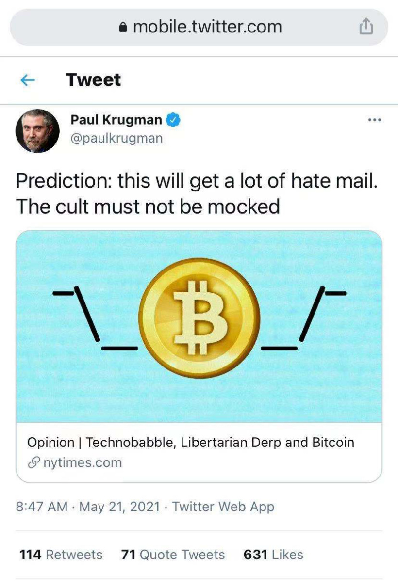 在纽约时报评论中,克鲁格曼表示,比特币之类的加密货币是一个庞氏骗局。12 年过去了,加密货币在正常经济活动中几乎没有发挥任何作用。我们听到它们被用作支付手段均是与非法活动有关,比如洗钱或用作赎金支付给黑客。