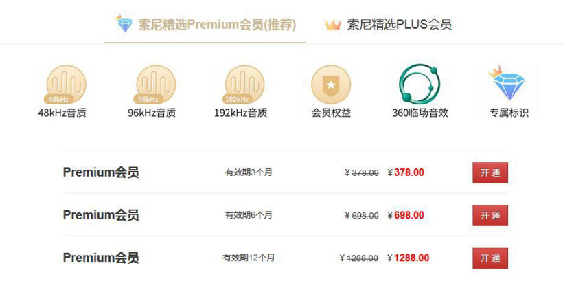 索尼 Premium 会员可以享用 192kHz 的高清音频,但价格嘛……