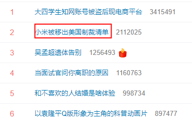目前,“小米被移出美国制裁清单”话题已登上微博热搜第二位,引发网友热议。