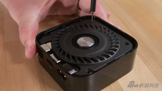 与以前的 Apple TV 一样,因为是塑料外壳,所以在红外镜头下,整个机器都是透明的,Apple TV 内部的大风扇没有通过电缆连接到逻辑板上,而是使用四个金属接触针,从而使拆卸工作更加轻松。iFixit 指出,Apple TV 易于拆卸,因为其每个组件都可以简单地分层放置,并易于用螺丝刀卸下。
