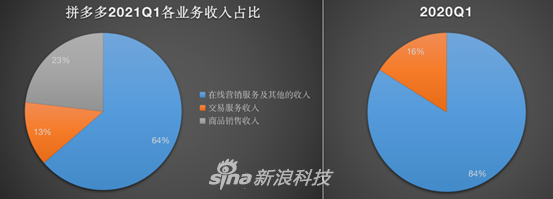 目前,拼多多的营收结构已逐渐明晰,形成以在线营销服务和其他收入为核心收入来源,商品销售收入和交易服务收入为其余两项收入支撑的营收结构。