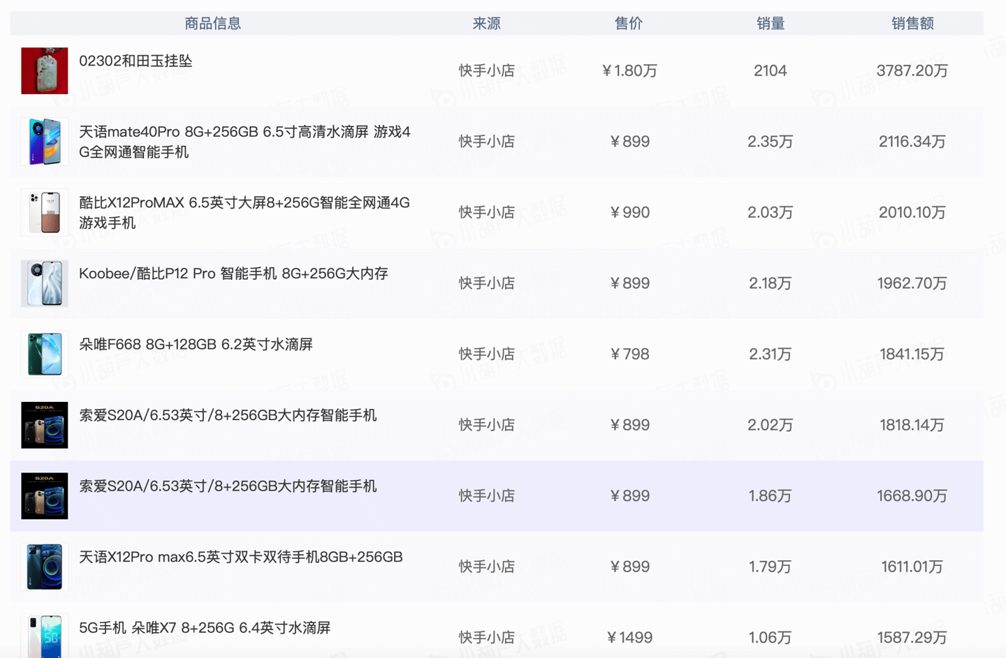 小葫芦大数据显示,截止到 6 月 2 日的近 30 日里,“驴嫂平荣”带货手机数码产品销售额达 3.17 亿,订单量达 33.47 万,总共上架的 93 款产品中,手机占三成。其中,销售额最高的天语 mate40Pro,总共卖出了 2116.34 万元,紧随其后的酷比 X12ProMAX、酷比 P12 Pro、朵唯 F668 等销售额也近 2000 万元。