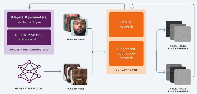 通过识别这些图像中的独特指纹,Facebook 的 AI 可以分辨出哪些伪造图像由同一个生成模型创建。