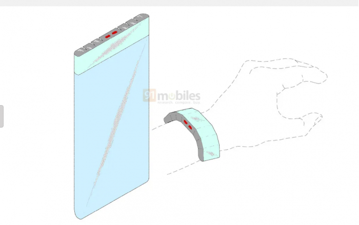 根据三星向世界知识产权组织(WIPO)提交的专利,三星可能正在开发一款独特的智能手机,它将拥有一个可拆卸的显示屏。该专利最早由91mobiles发现,早在2018年就已提交,本周初才公布。专利申请所附的图片显示,手机的顶部部分可以分离并包裹在弯曲的表面上,如你的手,很像一个健身带。然而,它只包裹在手的上半部分,因此不能完全固定在手腕上。可拆卸部分的左侧窗格上有两个按钮,可能是用于选择或导航。分离的部分有可能通过蓝牙连接到手机上。