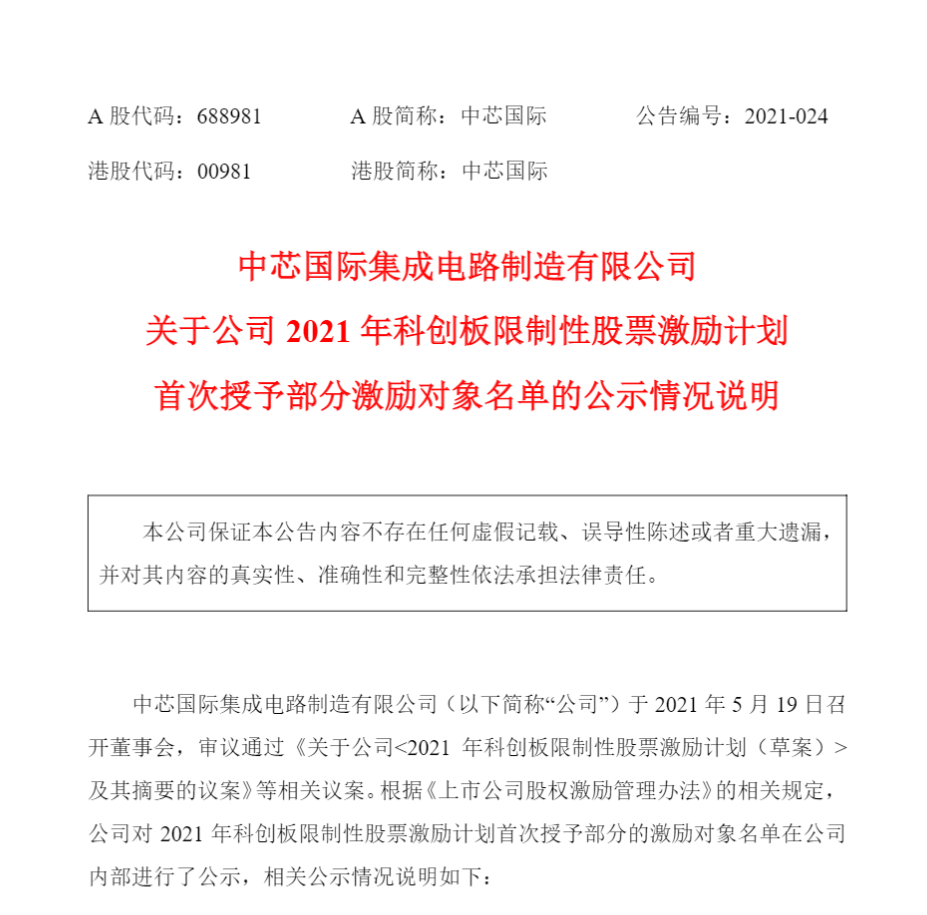 官方表示,本次激励计划的股票授予价格为每股 20 元,意味着满足条件后,激励对象可以每股 20 元的价格购买增发的中芯国际 A 股普通股股票。