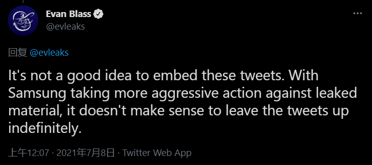 知名爆料者 Evan Blass 也证实了这个消息,他建议 Max Jambor 赶快删除推文。