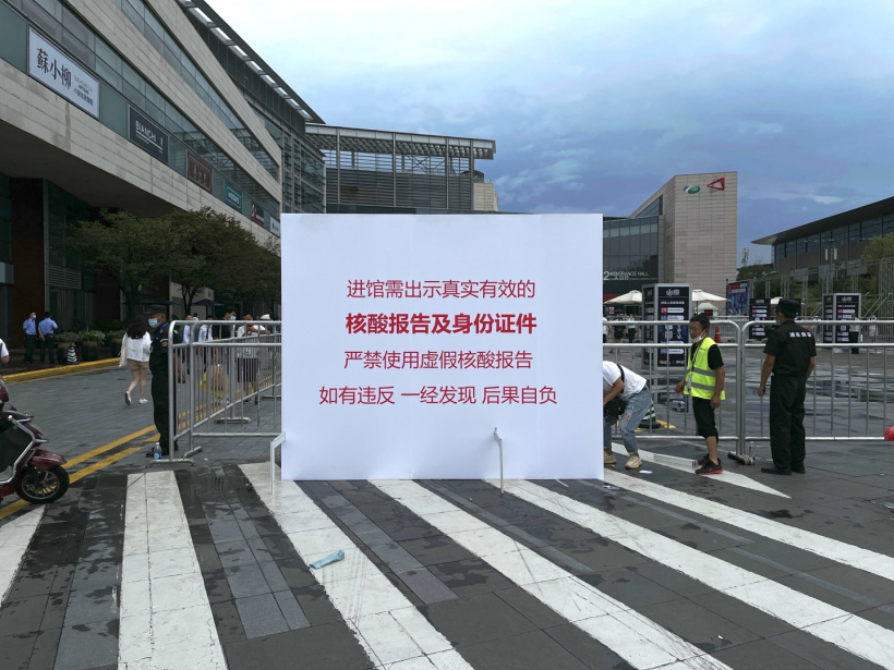 情况突发,其实工作人员压力也大。我 7 月 30 日去时,门口的告示牌都是临时搭建。官方应对已经算是很快了,场馆内提供核酸采样点,甚至有疫苗接种点。不过最新消息是 8 月 1 日、2 日已经取消了所有舞台活动和周边礼品赠送,就是为了防止人群聚集,很多展商已经提前撤展。