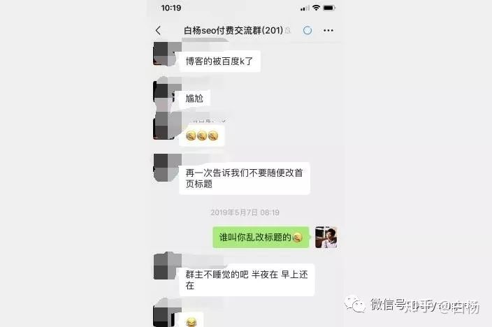 (白杨SEO付费群截图,某小伙血淋淋经验教训哈哈哈)