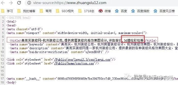 (截图白杨SEO博客首页,用crtl+u可以快速查看当前网页源代码)