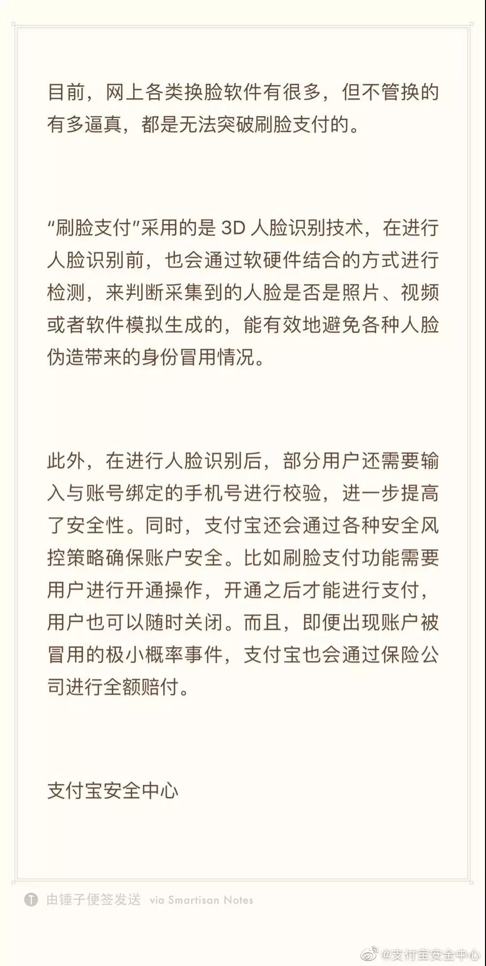 于是网友有疑问了,那生活中比较常见的微信和支付宝的刷脸支付安全吗? 微信方面表示↓↓↓