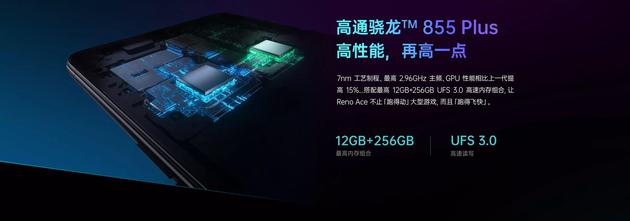OPPO Reno Ace的定位是“超级玩家的全能手机”,全能手机肯定少不了旗舰的配置。OPPO Reno Ace全系标配骁龙855Plus,顶级SoC芯片,最高运行频率2.96GHz,最高12GB高速大内存组合,顶尖的配置让你灵活应对工作和开黑,大型游戏照样全场carry。