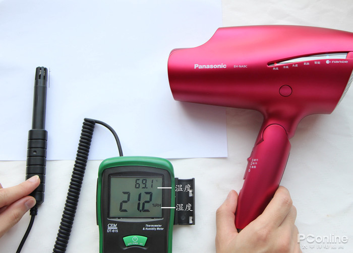 在室温为30℃的环境下,我们实际测试到,它吹出的热风温度范围在48.6℃-51.4℃,即便是在炎热的夏天,整个吹发体验依旧是那般舒适。