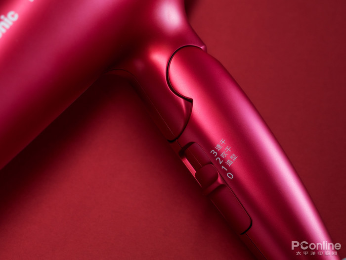 它一共有3档风速可调,分别是1档造型,2档吹干,3档速干,调节按钮设置在手柄处,使用起来很便捷。