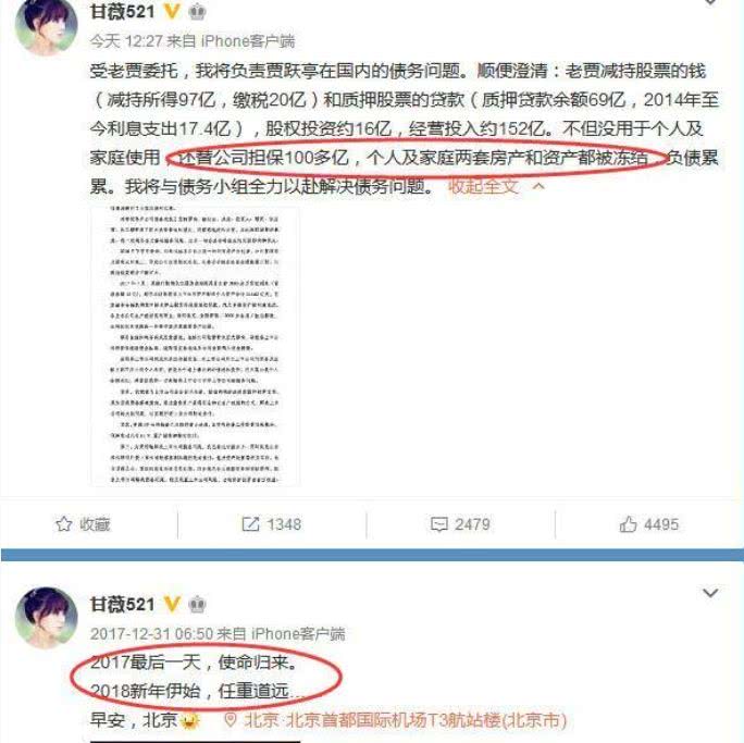 甘薇不仅仅是贾跃亭的妻子,也是贾跃亭的债权人和债务人。