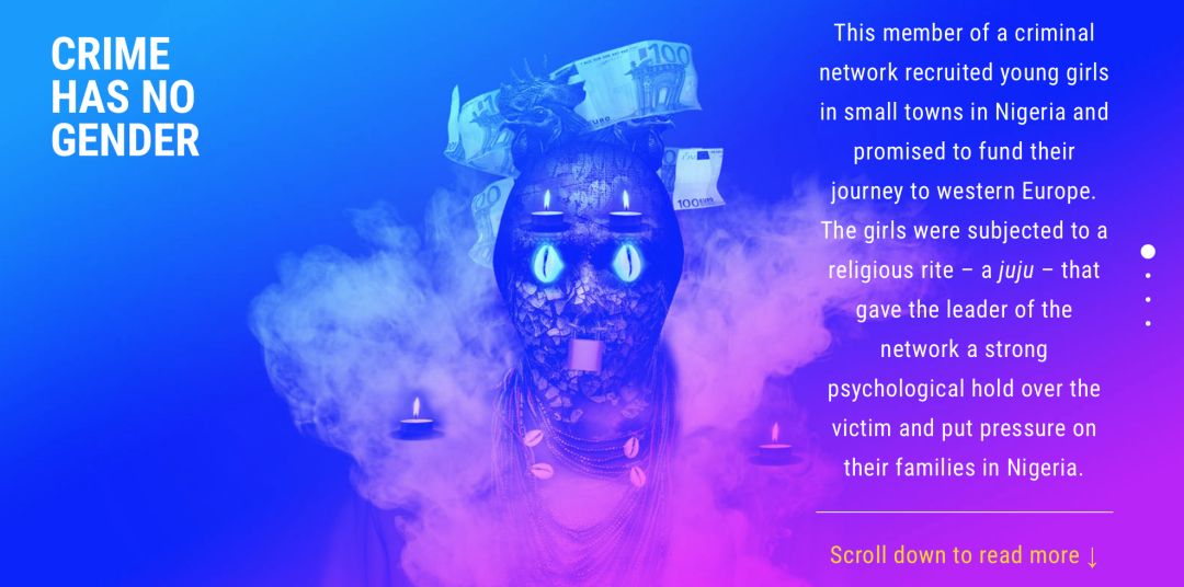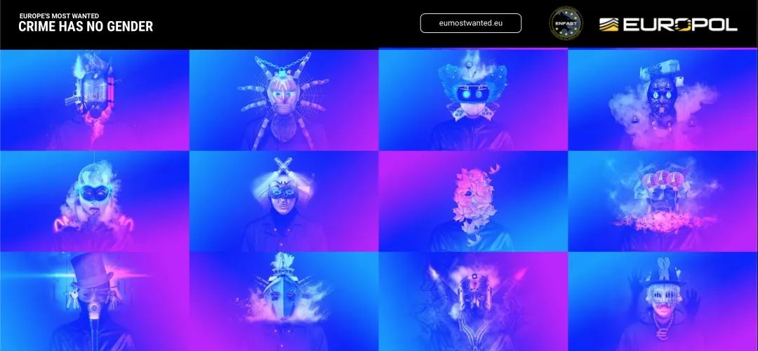 欧洲刑警组织采取了一个非常有趣的方式揭开这些人的“面纱”。在网站首页,21名通缉犯都蒙着面纱,完全看不出性别。但当你点击进去,每了解到这个人多一点信息,ta头部的遮挡物就会少一点,最终露出全貌。