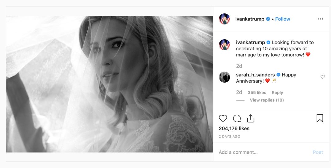 伊万卡Instagram截图。
