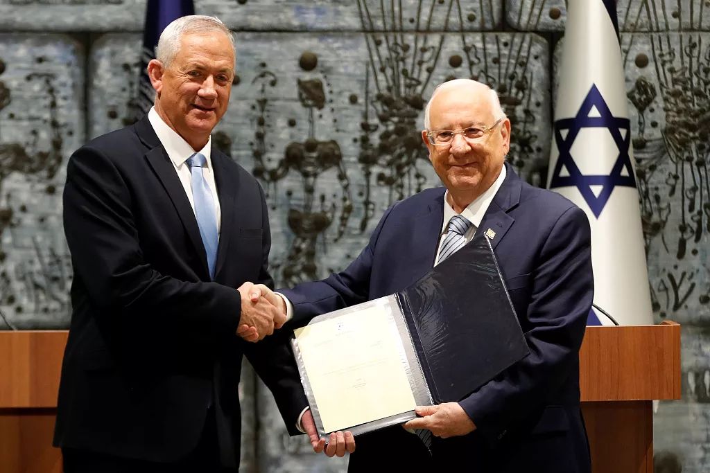 当地时间10月23日,耶路撒冷,以色列总统里夫林授权蓝白党领导人甘茨在未来28天内组建新政府。/视觉中国