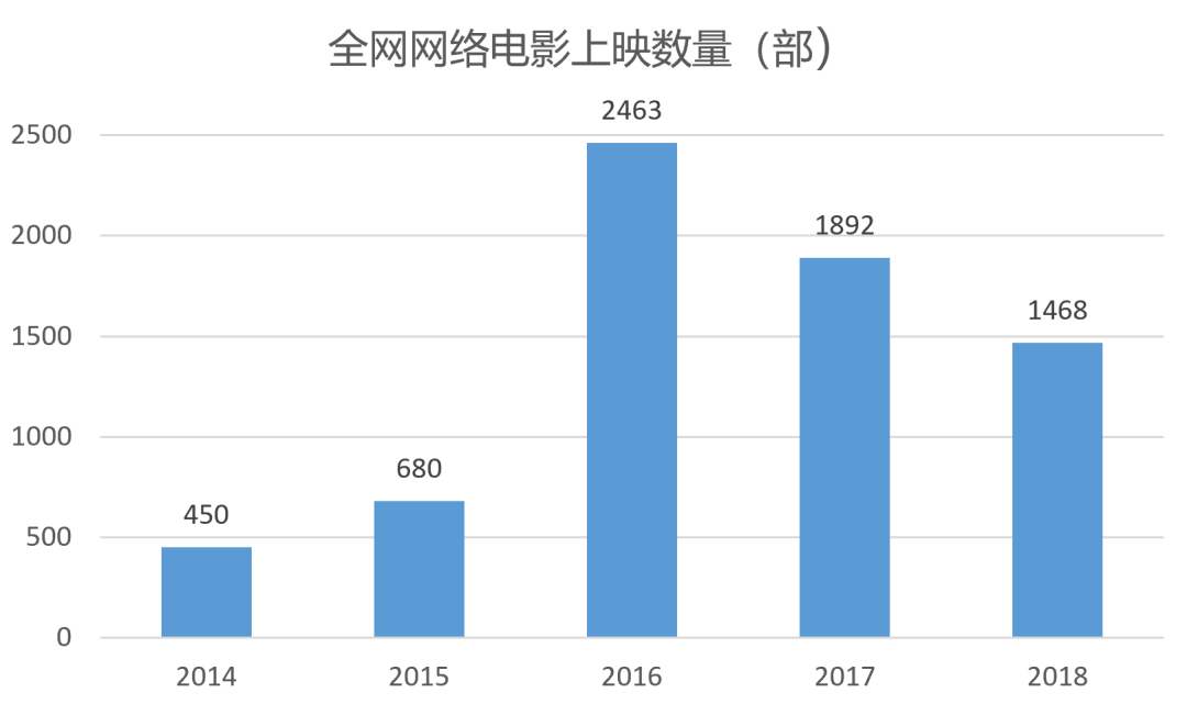 整体上,全网网络电影的上映数量,经过2016年的指数式爆发后,逐年下滑。