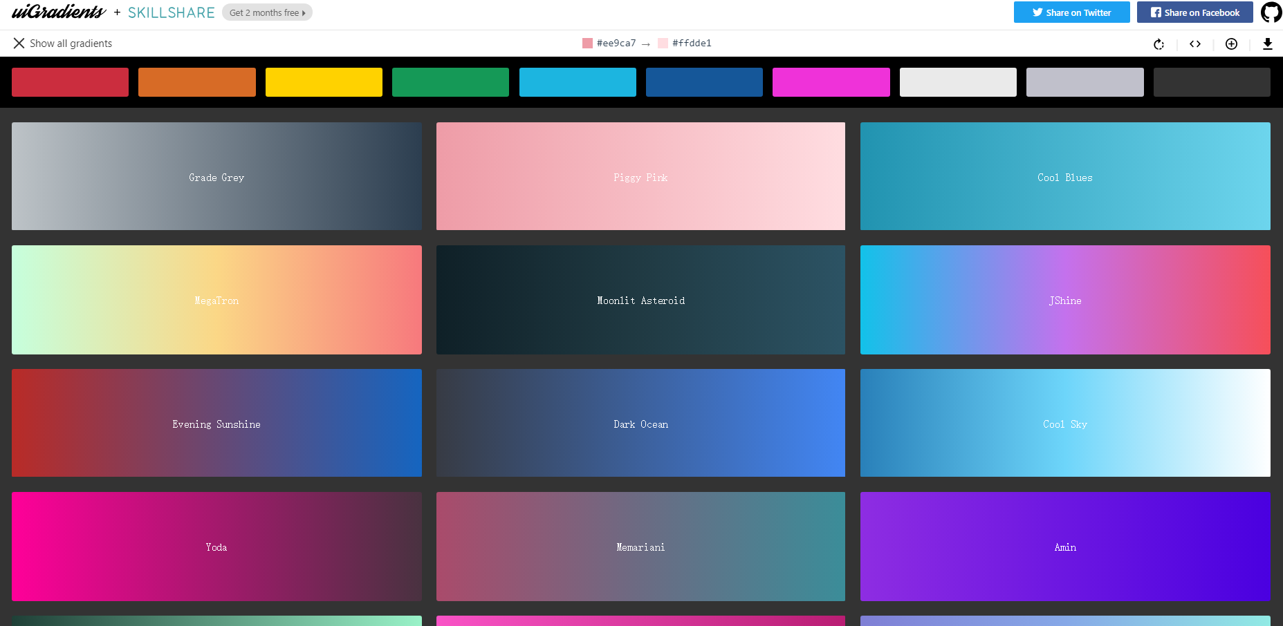 怎么夸赞这个网站?当然是无敌强了!直接在左上角选一个色系,直接帮你生成各种渐变色背景,不喜欢可以直接点击下一张,拯救我的审美就靠它了!