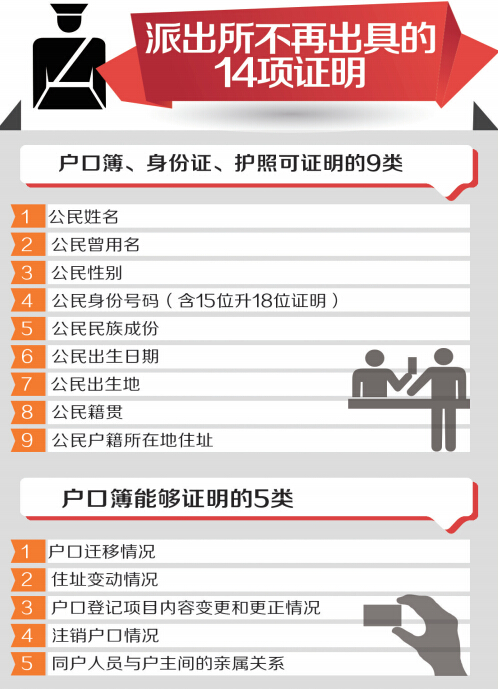 8月11日,公安部等12部门联合出台《关于改进和规范公安派出所出具证明工作的意见》(下称《意见》),自9月1日起实施,其中有14类证明派出所将不再开具。