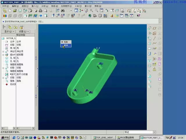 Pro/Engineer操作软件是美国PTC公司旗下的CAD/CAM/CAE一体化的三维软件。Pro/Engineer软件以参数化著称,是参数化技术的最早应用者,在目前的三维造型软件领域中占有着重要地位。Pro/Engineer作为当今世界机械CAD/CAE/CAM领域的新标准而得到业界的认可和推广,是现今主流的CAD/CAM/CAE软件之一,特别是在国内产品设计领域占据重要位置。
